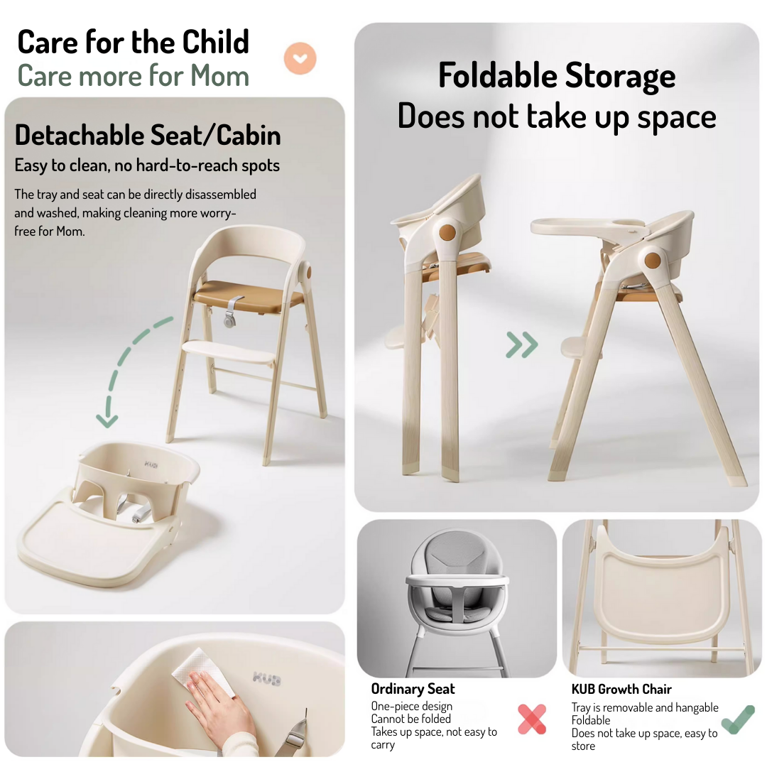Introducing the 4-in-1 Growing Baby High Chair — thoughtfully designed to accompany your child from their very first bite to their early school years and beyond. With a perfect blend of safety, comfort, and modern home aesthetics, this chair grows with your child and remains a stylish addition to your home.